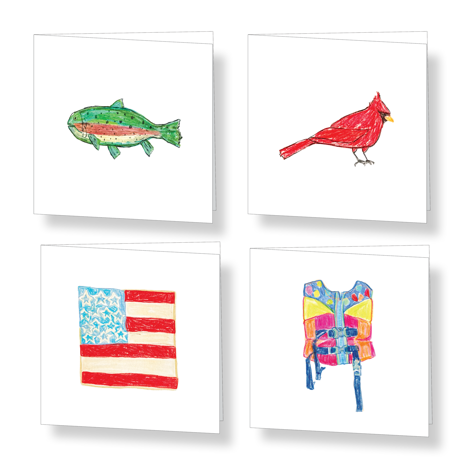 This set of 4 mini cards, each measuring 2.75" square when folded, adds a touch of charm to any occasion. Perfect for sending thank-you notes or adding to party favors, these cards are a must-have for any host or hostess.